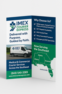 Imex Courier Express is a faith-driven delivery service specializing in medical specimen transport, pharmaceutical deliveries, STAT courier services, commercial parcel delivery, and dedicated routes across Georgia, Florida, and the Carolinas.